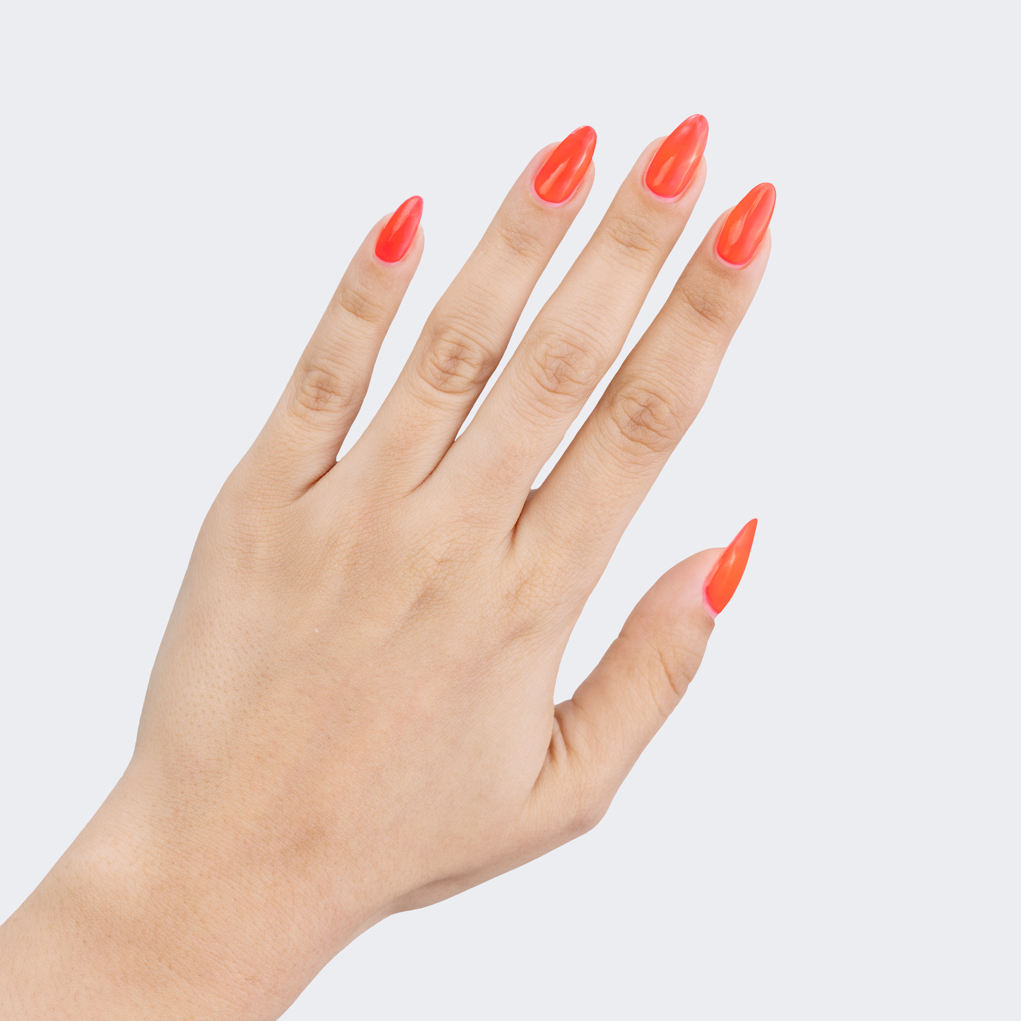 Neon coral. Medium-light. Opaque. Warm undertone.