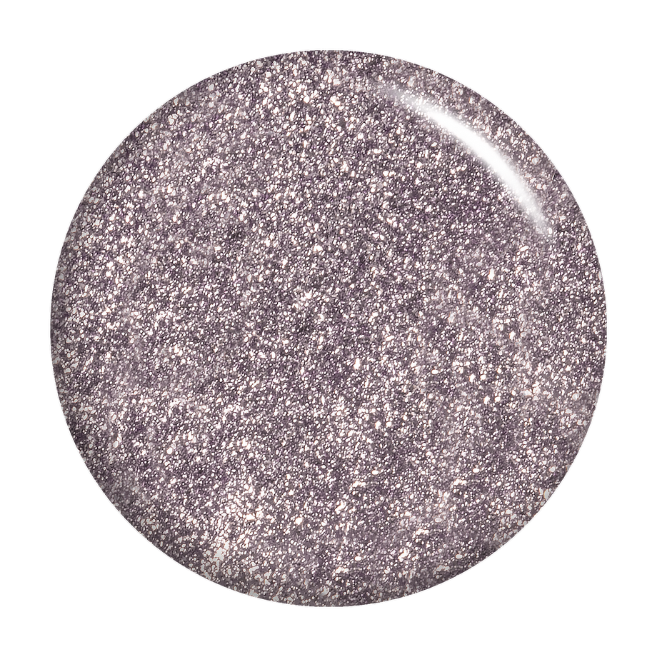 Pale lavender. Metallic foil sparkle. Opaque. Cool undertone.